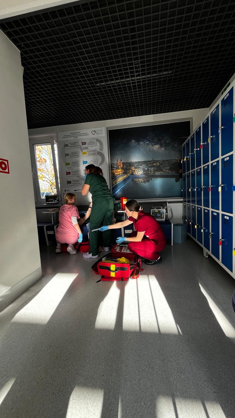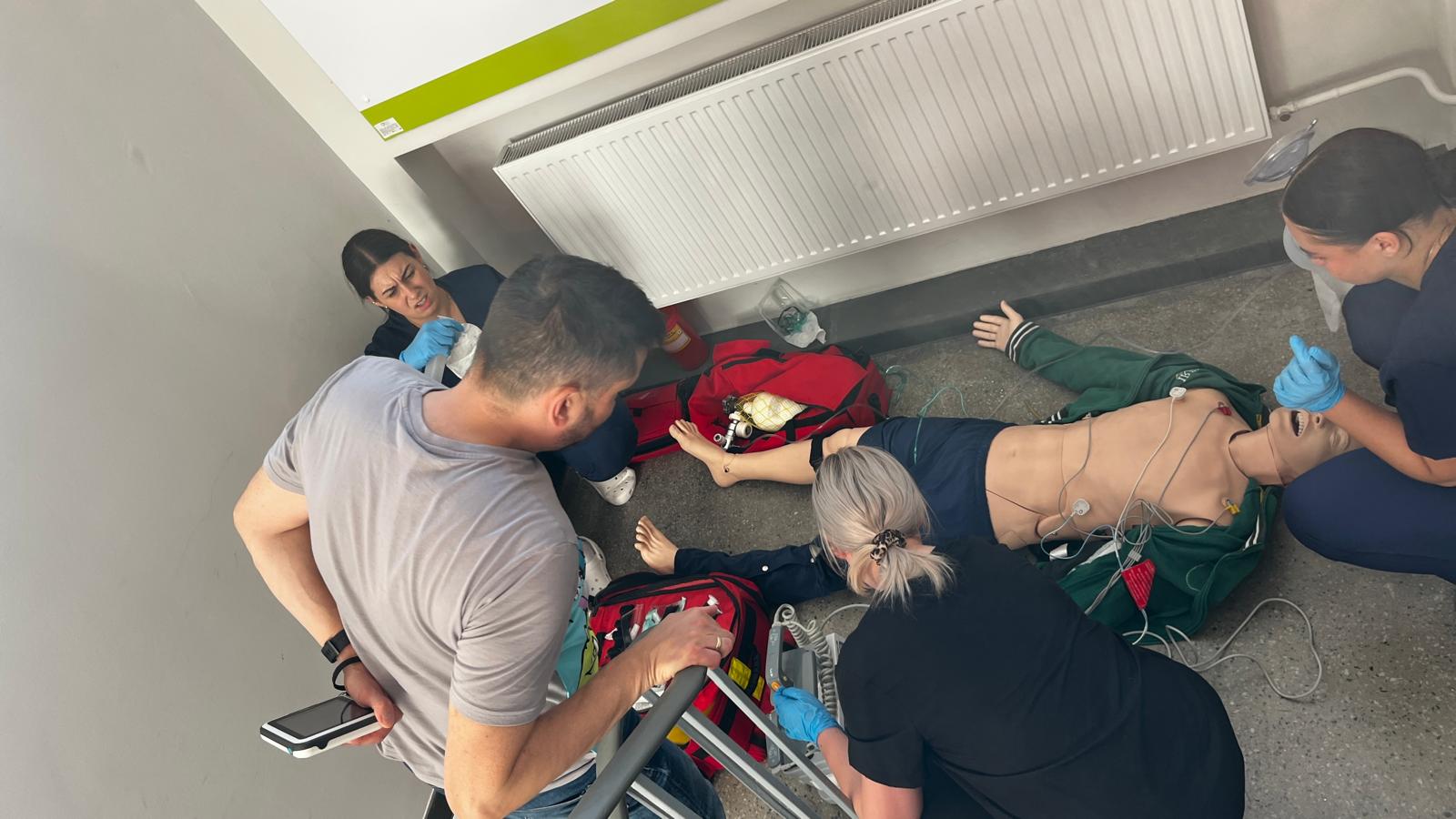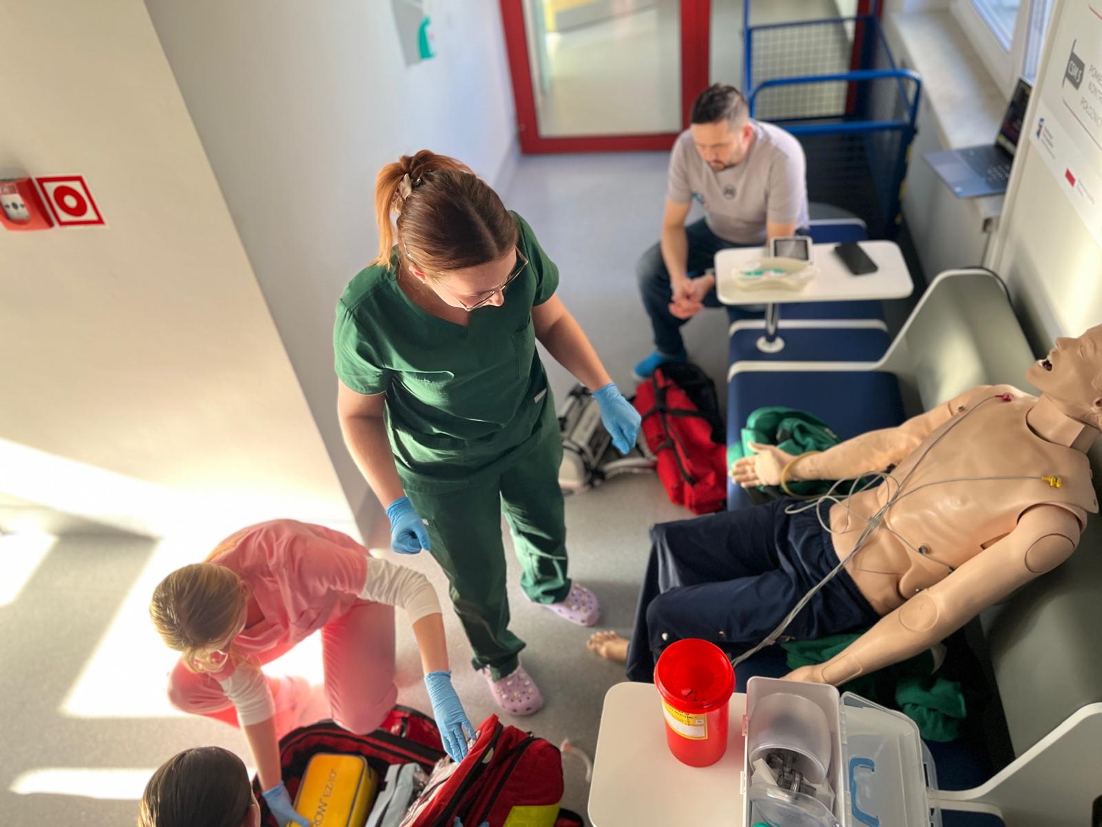 Symulacje odbywają się nie tylko w salach, ale także w korytarzach, na klatkach schodowych czy nawet w toaletach – bo nagłe zatrzymanie krążenia (NZK) może przydarzyć się wszędzie, a szybka reakcja ratuje życie. To doskonała okazja, by przećwiczyć działania w realistycznych warunkach.