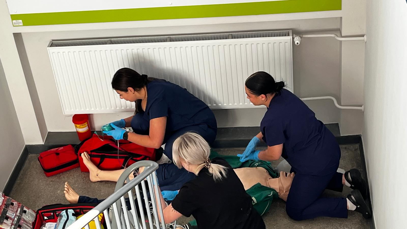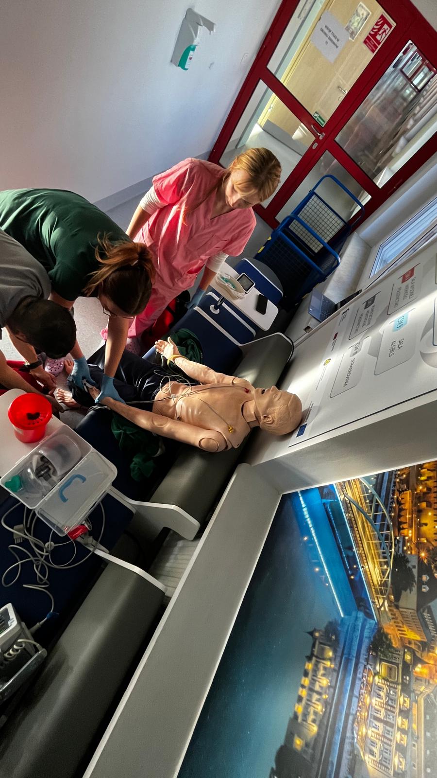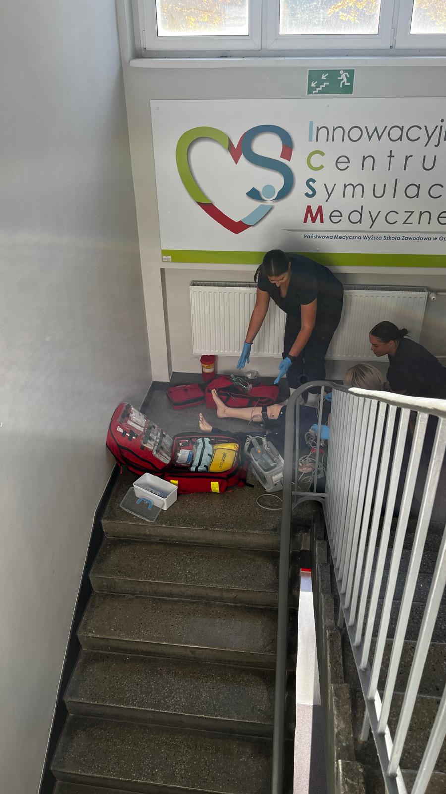 Symulacje odbywają się nie tylko w salach, ale także w korytarzach, na klatkach schodowych czy nawet w toaletach – bo nagłe zatrzymanie krążenia (NZK) może przydarzyć się wszędzie, a szybka reakcja ratuje życie. To doskonała okazja, by przećwiczyć działania w realistycznych warunkach.