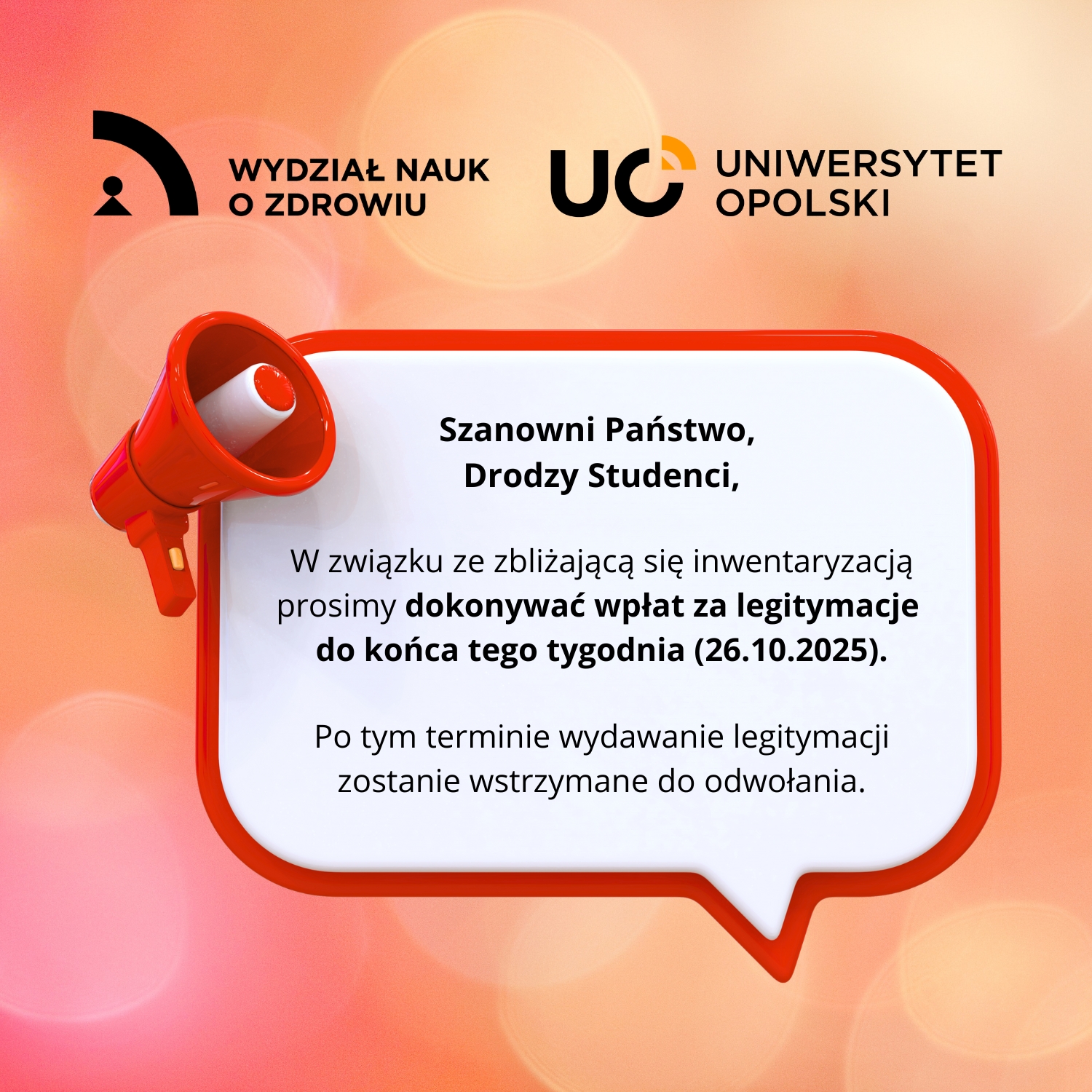 W związku ze zbliżającą się inwentaryzacją uprzejmie prosimy o dokonywaniewpłat za legitymacje do końca bieżącego tygodnia, tj. do 26 października 2025 r.