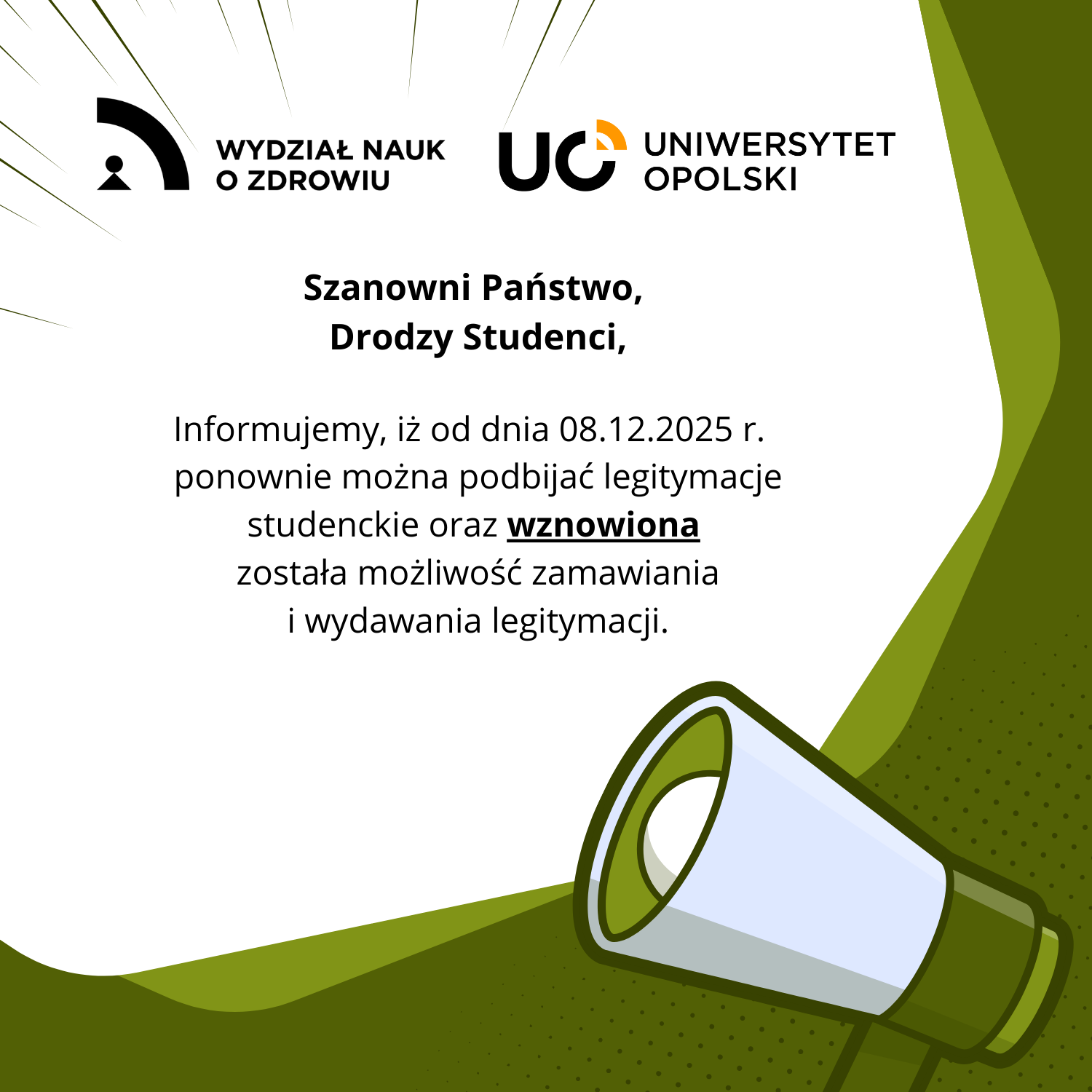 Informujemy, iż od dnia 08.12.2025 r. ponownie można podbijać legitymacje studenckie oraz wznowiona została możliwość zamawiania i wydawania legitymacji.