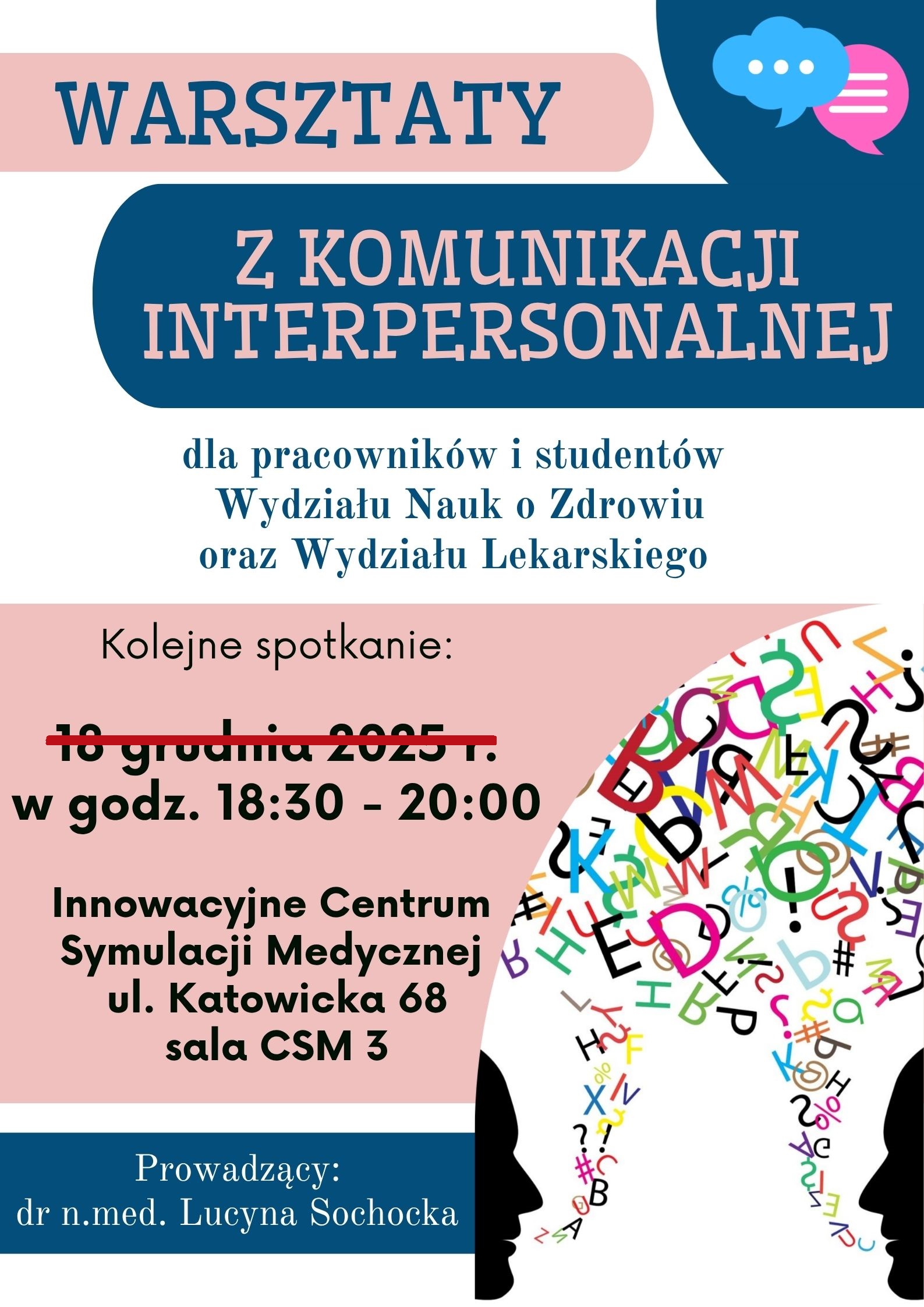 W imieniu dr n. med. Lucyny Sochockiej zapraszamy pracowników i studentów Wydziału Nauk o Zdrowiu UO oraz Wydziału Lekarskiego UO na kolejne zajęcia warsztatowe z komunikacji interpersonalnej.